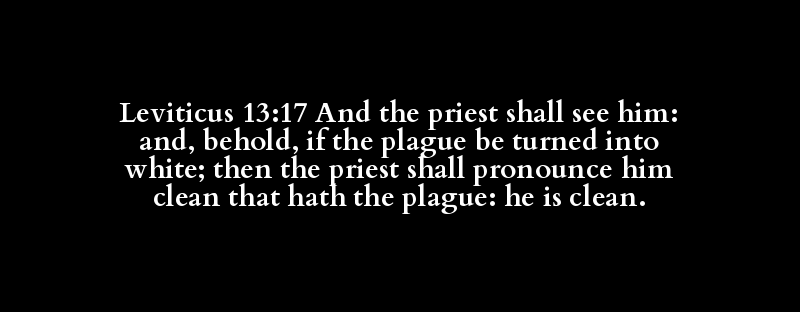 Leviticus 13:17 And the priest shall see him: and, behold, if the plague be turned into white; then the priest shall pronounce him clean that hath the plague: he is clean.