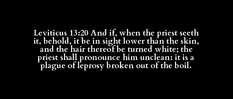 Leviticus 13:20 And if, when the priest seeth it, behold, it be in sight lower than the skin, and the hair thereof be turned white; the priest shall pronounce him unclean: it is a plague of leprosy broken out of the boil.