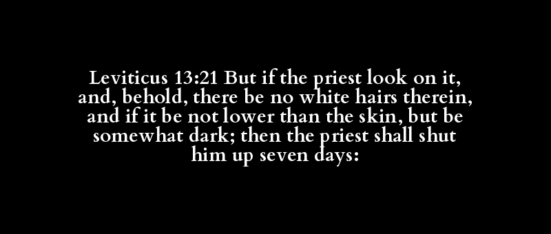Leviticus 13:21 But if the priest look on it, and, behold, there be no white hairs therein, and if it be not lower than the skin, but be somewhat dark; then the priest shall shut him up seven days: