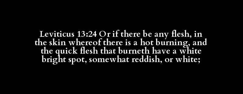 Leviticus 13:24 Or if there be any flesh, in the skin whereof there is a hot burning, and the quick flesh that burneth have a white bright spot, somewhat reddish, or white;