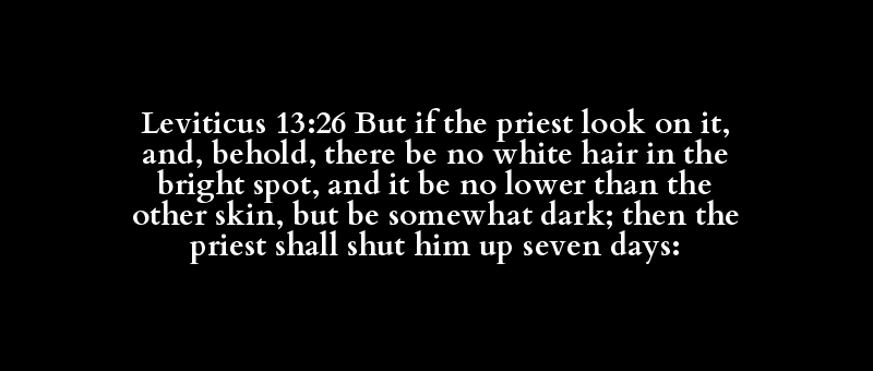 Leviticus 13:26 But if the priest look on it, and, behold, there be no white hair in the bright spot, and it be no lower than the other skin, but be somewhat dark; then the priest shall shut him up seven days: