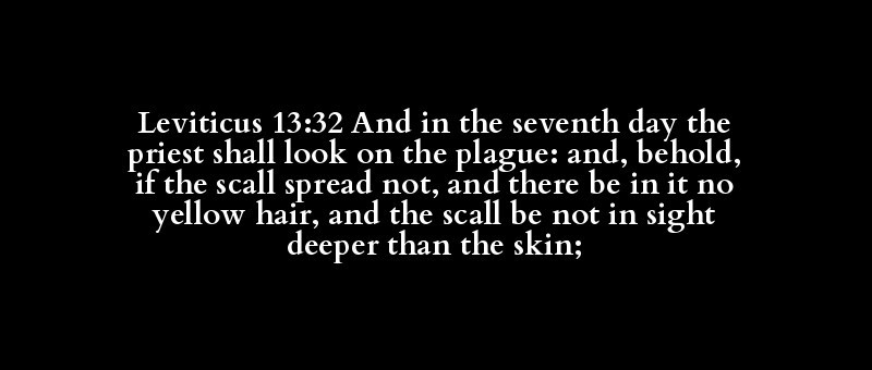 Leviticus 13:32 And in the seventh day the priest shall look on the plague: and, behold, if the scall spread not, and there be in it no yellow hair, and the scall be not in sight deeper than the skin;