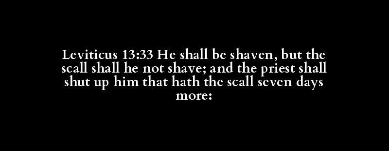 Leviticus 13:33 He shall be shaven, but the scall shall he not shave; and the priest shall shut up him that hath the scall seven days more: