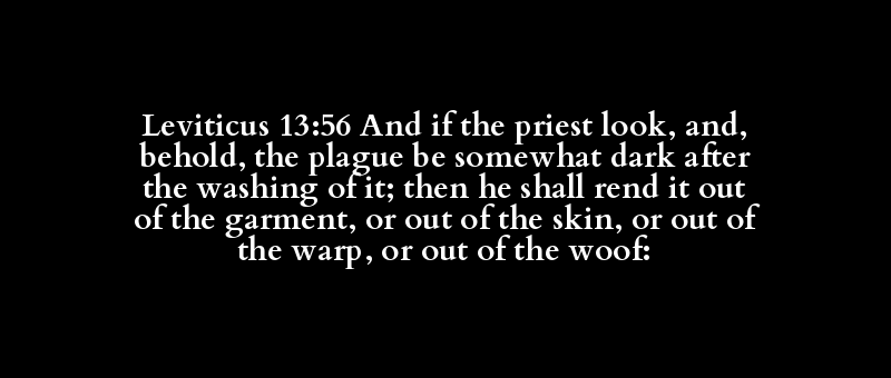 Leviticus 13:56 And if the priest look, and, behold, the plague be somewhat dark after the washing of it; then he shall rend it out of the garment, or out of the skin, or out of the warp, or out of the woof: