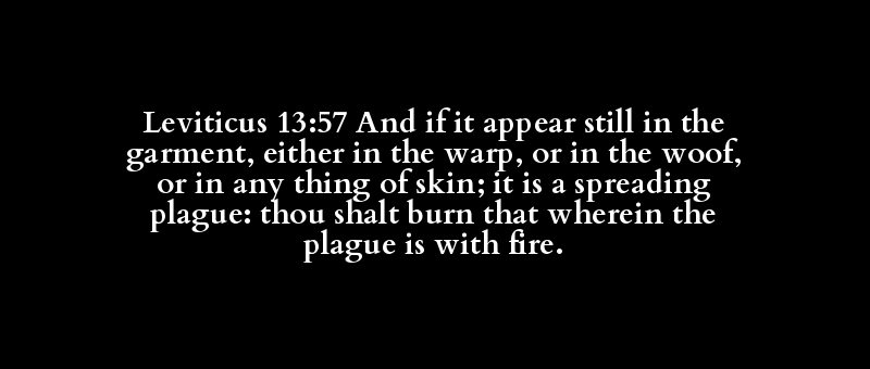 Leviticus 13:57 And if it appear still in the garment, either in the warp, or in the woof, or in any thing of skin; it is a spreading plague: thou shalt burn that wherein the plague is with fire.