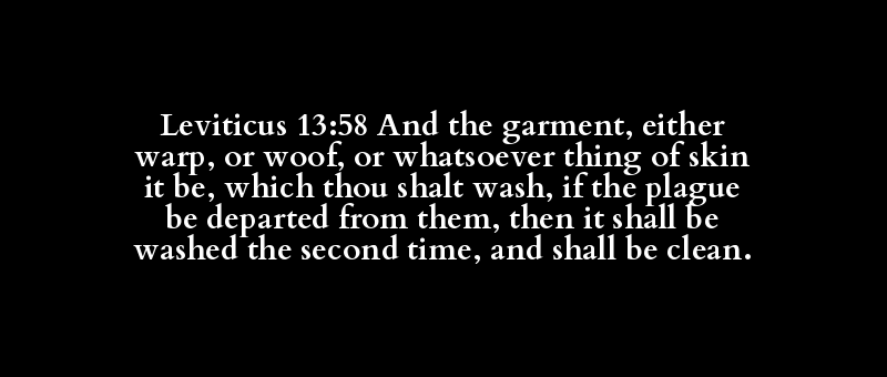 Leviticus 13:58 And the garment, either warp, or woof, or whatsoever thing of skin it be, which thou shalt wash, if the plague be departed from them, then it shall be washed the second time, and shall be clean.