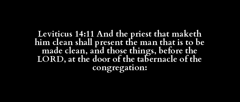 Leviticus 14:11 And the priest that maketh him clean shall present the man that is to be made clean, and those things, before the LORD, at the door of the tabernacle of the congregation: