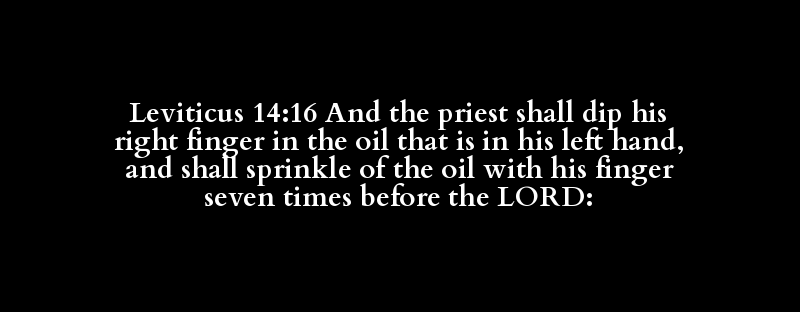 Leviticus 14:16 And the priest shall dip his right finger in the oil that is in his left hand, and shall sprinkle of the oil with his finger seven times before the LORD: