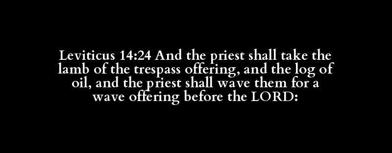 Leviticus 14:24 And the priest shall take the lamb of the trespass offering, and the log of oil, and the priest shall wave them for a wave offering before the LORD: