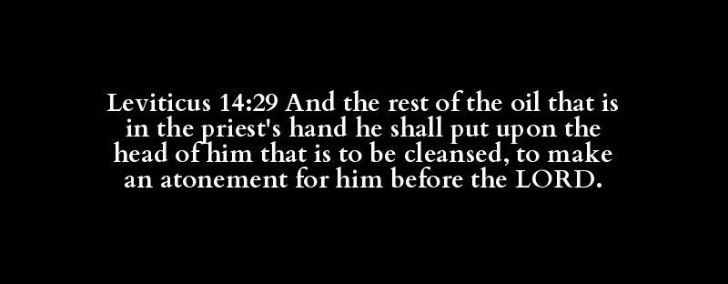 Leviticus 14:29 And the rest of the oil that is in the priest's hand he shall put upon the head of him that is to be cleansed, to make an atonement for him before the LORD.