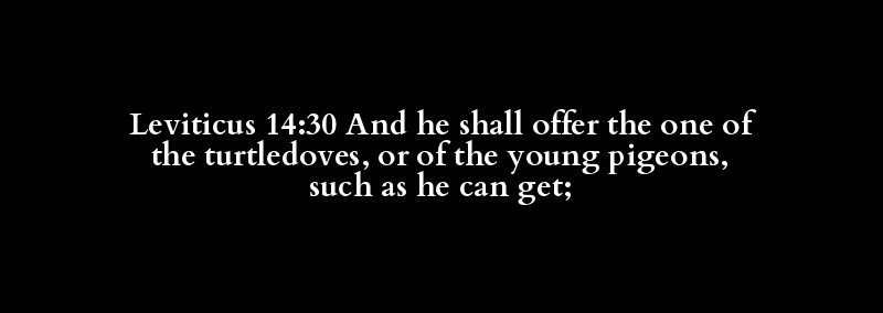 Leviticus 14:30 And he shall offer the one of the turtledoves, or of the young pigeons, such as he can get;