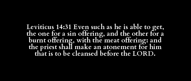 Leviticus 14:31 Even such as he is able to get, the one for a sin offering, and the other for a burnt offering, with the meat offering: and the priest shall make an atonement for him that is to be cleansed before the LORD.