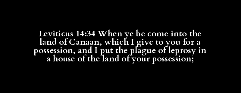 Leviticus 14:34 When ye be come into the land of Canaan, which I give to you for a possession, and I put the plague of leprosy in a house of the land of your possession;