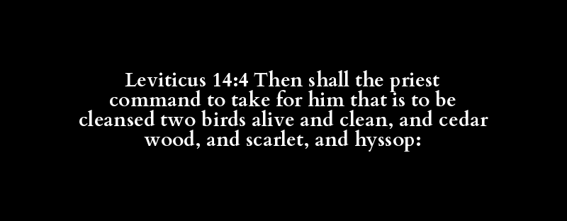 Leviticus 14:4 Then shall the priest command to take for him that is to be cleansed two birds alive and clean, and cedar wood, and scarlet, and hyssop: