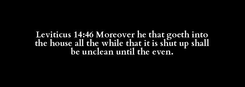 Leviticus 14:46 Moreover he that goeth into the house all the while that it is shut up shall be unclean until the even.
