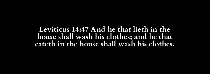 Leviticus 14:47 And he that lieth in the house shall wash his clothes; and he that eateth in the house shall wash his clothes.
