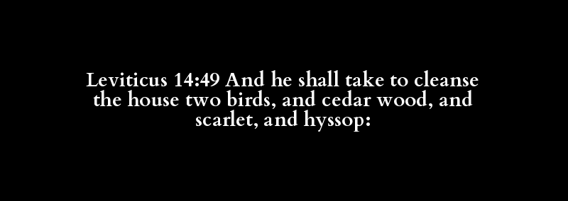 Leviticus 14:49 And he shall take to cleanse the house two birds, and cedar wood, and scarlet, and hyssop: