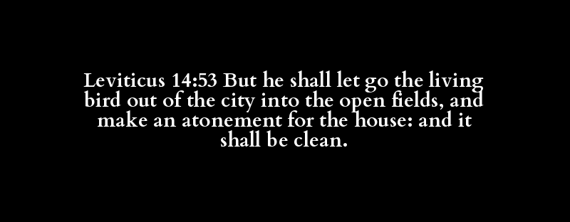 Leviticus 14:53 But he shall let go the living bird out of the city into the open fields, and make an atonement for the house: and it shall be clean.