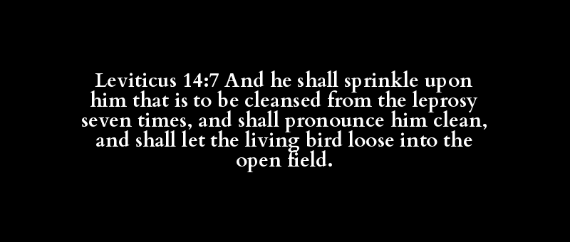 Leviticus 14:7 And he shall sprinkle upon him that is to be cleansed from the leprosy seven times, and shall pronounce him clean, and shall let the living bird loose into the open field.