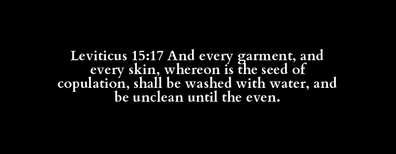 Leviticus 15:17 And every garment, and every skin, whereon is the seed of copulation, shall be washed with water, and be unclean until the even.