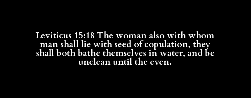 Leviticus 15:18 The woman also with whom man shall lie with seed of copulation, they shall both bathe themselves in water, and be unclean until the even.