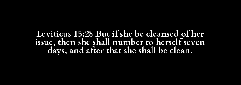 Leviticus 15:28 But if she be cleansed of her issue, then she shall number to herself seven days, and after that she shall be clean.