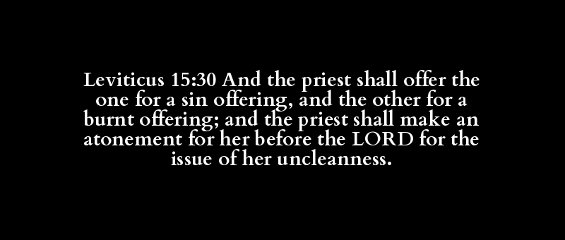 Leviticus 15:30 And the priest shall offer the one for a sin offering, and the other for a burnt offering; and the priest shall make an atonement for her before the LORD for the issue of her uncleanness.
