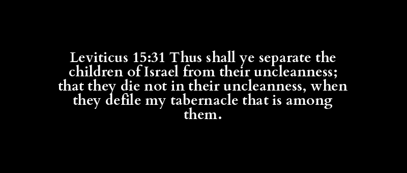 Leviticus 15:31 Thus shall ye separate the children of Israel from their uncleanness; that they die not in their uncleanness, when they defile my tabernacle that is among them.