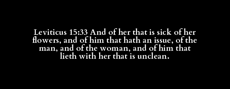Leviticus 15:33 And of her that is sick of her flowers, and of him that hath an issue, of the man, and of the woman, and of him that lieth with her that is unclean.