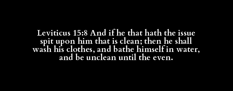 Leviticus 15:8 And if he that hath the issue spit upon him that is clean; then he shall wash his clothes, and bathe himself in water, and be unclean until the even.