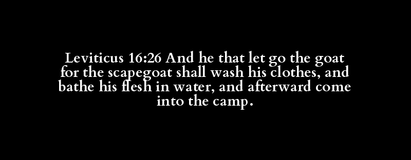 Leviticus 16:26 And he that let go the goat for the scapegoat shall wash his clothes, and bathe his flesh in water, and afterward come into the camp.