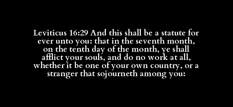 Leviticus 16:29 And this shall be a statute for ever unto you: that in the seventh month, on the tenth day of the month, ye shall afflict your souls, and do no work at all, whether it be one of your own country, or a stranger that sojourneth among you: