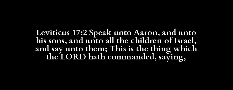 Leviticus 17:2 Speak unto Aaron, and unto his sons, and unto all the children of Israel, and say unto them; This is the thing which the LORD hath commanded, saying,