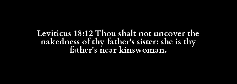 Leviticus 18:12 Thou shalt not uncover the nakedness of thy father's sister: she is thy father's near kinswoman.