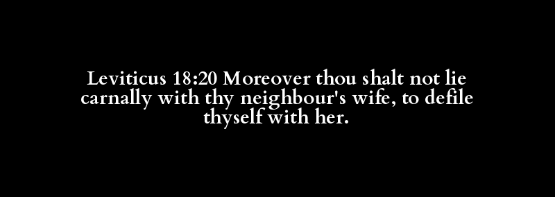 Leviticus 18:20 Moreover thou shalt not lie carnally with thy neighbour's wife, to defile thyself with her.