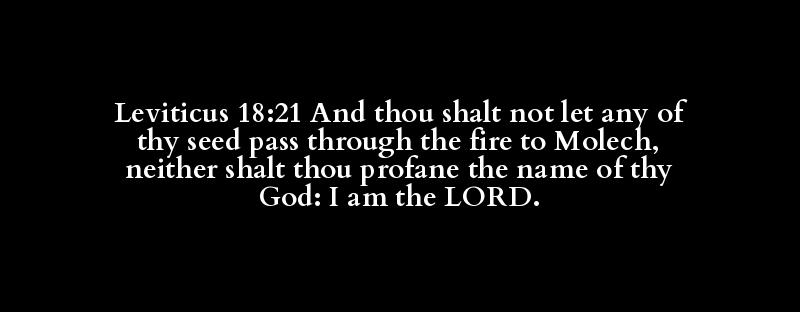 Leviticus 18:21 And thou shalt not let any of thy seed pass through the fire to Molech, neither shalt thou profane the name of thy God: I am the LORD.