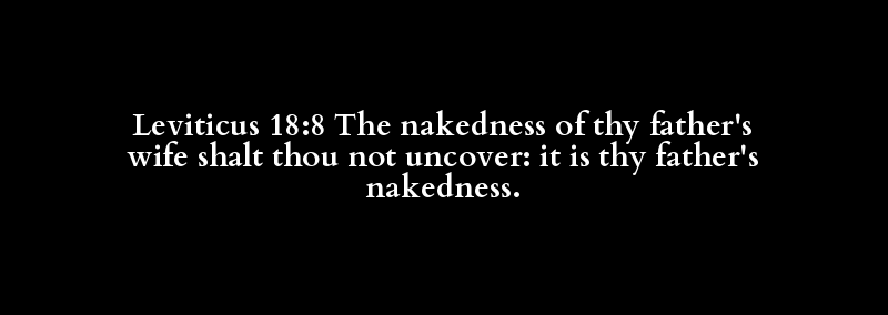 Leviticus 18:8 The nakedness of thy father's wife shalt thou not uncover: it is thy father's nakedness.