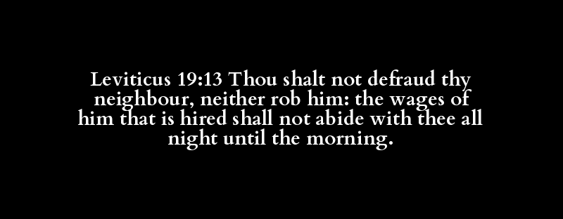 Leviticus 19:13 Thou shalt not defraud thy neighbour, neither rob him: the wages of him that is hired shall not abide with thee all night until the morning.