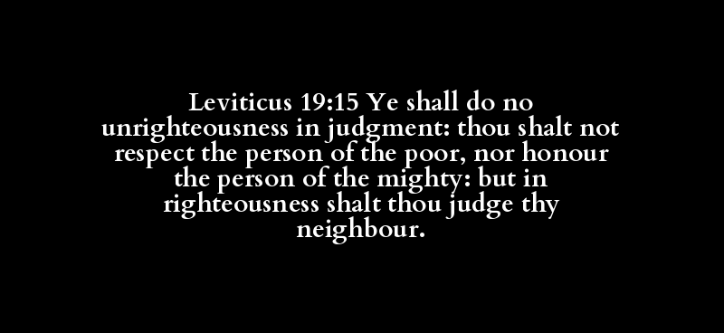 Leviticus 19:15 Ye shall do no unrighteousness in judgment: thou shalt not respect the person of the poor, nor honour the person of the mighty: but in righteousness shalt thou judge thy neighbour.
