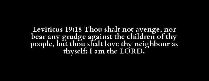 Leviticus 19:18 Thou shalt not avenge, nor bear any grudge against the children of thy people, but thou shalt love thy neighbour as thyself: I am the LORD.