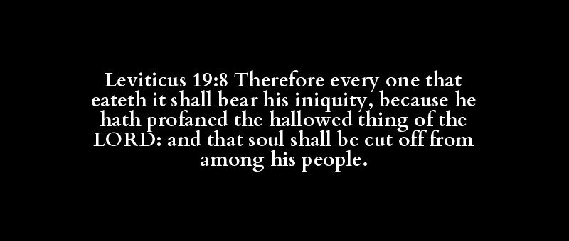 Leviticus 19:8 Therefore every one that eateth it shall bear his iniquity, because he hath profaned the hallowed thing of the LORD: and that soul shall be cut off from among his people.