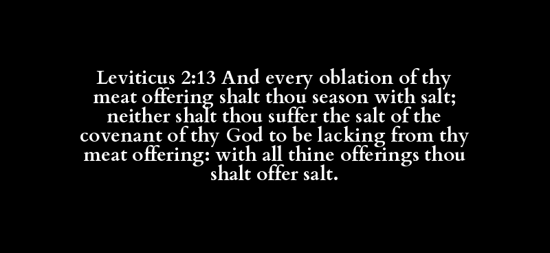 Leviticus 2:13 And every oblation of thy meat offering shalt thou season with salt; neither shalt thou suffer the salt of the covenant of thy God to be lacking from thy meat offering: with all thine offerings thou shalt offer salt.