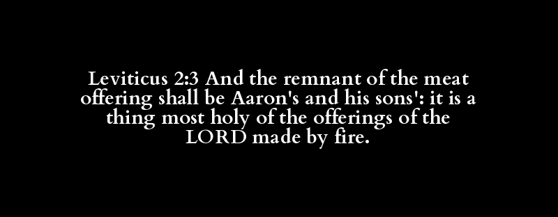 Leviticus 2:3 And the remnant of the meat offering shall be Aaron's and his sons': it is a thing most holy of the offerings of the LORD made by fire.