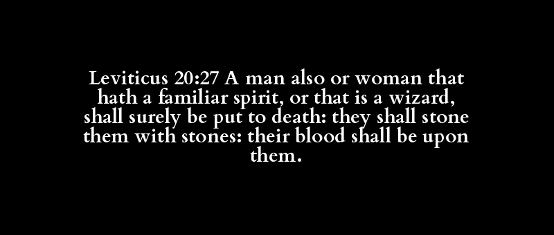 Leviticus 20:27 A man also or woman that hath a familiar spirit, or that is a wizard, shall surely be put to death: they shall stone them with stones: their blood shall be upon them.