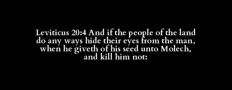 Leviticus 20:4 And if the people of the land do any ways hide their eyes from the man, when he giveth of his seed unto Molech, and kill him not: