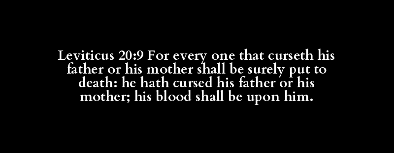 Leviticus 20:9 For every one that curseth his father or his mother shall be surely put to death: he hath cursed his father or his mother; his blood shall be upon him.
