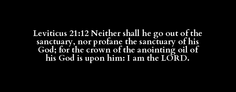 Leviticus 21:12 Neither shall he go out of the sanctuary, nor profane the sanctuary of his God; for the crown of the anointing oil of his God is upon him: I am the LORD.