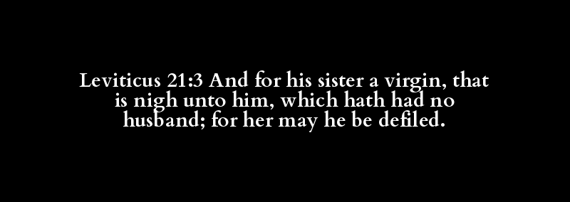 Leviticus 21:3 And for his sister a virgin, that is nigh unto him, which hath had no husband; for her may he be defiled.