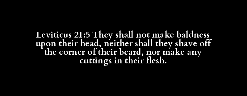Leviticus 21:5 They shall not make baldness upon their head, neither shall they shave off the corner of their beard, nor make any cuttings in their flesh.