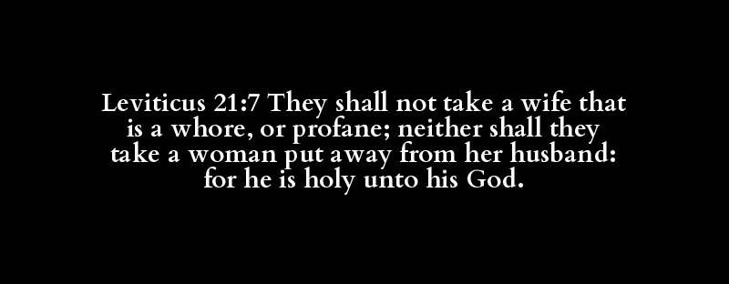 Leviticus 21:7 They shall not take a wife that is a whore, or profane; neither shall they take a woman put away from her husband: for he is holy unto his God.